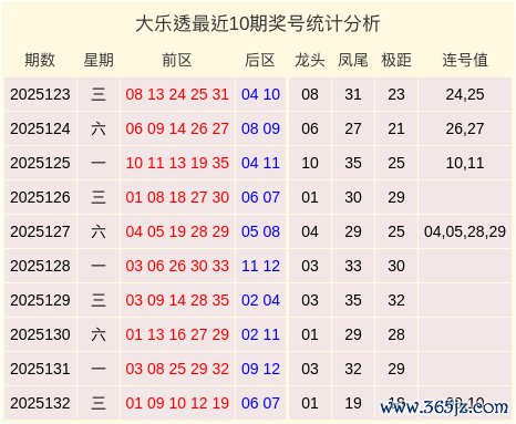 其中前区的龙头号码为01,凤尾号码为19,极距为18,开出1组连号09,10。